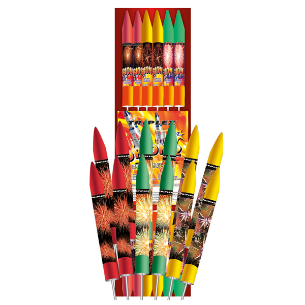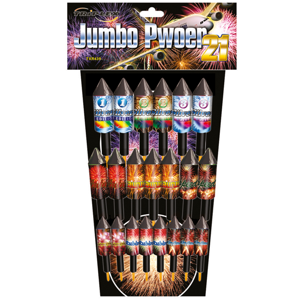 TXR873 AQUARIUS Wymiary [mm]: 74×8-22Waga prochu [g]: 154,2Zapakowanie: 10/1Klasa ADR: 1.3GKategoria CE: F2 TXR872 PISCES Wymiary [mm]: 48×5-12Waga prochu [g]: 38Zapakowanie: 18/1Klasa ADR: 1.4GKategoria CE: F2 TXR871 GEMINI Wymiary [mm]: 56×7Waga prochu [g]: 69Zapakowanie: 28/1Klasa ADR: 1.4GKategoria CE: F2 TXR793 ABSOLUT Wymiary [mm]: 135×5-28Waga prochu [g]: 225Zapakowanie: 12/3Klasa ADR: 1.3GKategoria CE: F2 TXR681 BIG WHALE 6 Wymiary [mm]: 94×9-24Waga prochu [g]: 268Zapakowanie: 8/1Klasa ADR: 1.3GKategoria CE: F2 TXR680 BIG WHALE 5 Wymiary [mm]: 84×7,5-31Waga prochu [g]: 303Zapakowanie: 10/1Klasa ADR: 1.3GKategoria CE: F2 TXR643 MINI RAKIETKI Wymiary [mm]: 380×50Waga prochu [g]: 33Zapakowanie: 24/6Klasa ADR: 1.4GKategoria CE: F2 TXR638 BIG WHALE 4 Wymiary [mm]: 85×10-24Waga prochu [g]: 216,5Zapakowanie: 10/1Klasa ADR: 1.3GKategoria CE: F2 TXR608 ASSORTMENT ROCKET Wymiary [mm]: 98×10-28Waga prochu [g]: 390,4Zapakowanie: 8/18Klasa ADR: 1.3GKategoria CE: F2 TXR607 TOP 10 Wymiary [mm]: 89×9-25Waga prochu [g]: 2448Zapakowanie: 10/10Klasa ADR: 1.3GKategoria CE: F2 TXR606 ROCKET ASSORTMENT Wymiary [mm]: 57×4-19Waga prochu [g]: 99Zapakowanie: 24/1Klasa ADR: 1.4GKategoria CE: F2 TXR570 EGOISTA Wymiary [mm]: 113×8-35Waga prochu [g]: 204,6Zapakowanie: 10/5Klasa ADR: 1.4GKategoria CE: F2 TXR439 JUMBO POWER 21 Wymiary [mm]: 104×13-30 Waga prochu [g]: 577,9 Zapakowanie: 5/1 Klasa ADR: 1.3G Kategoria CE: F2 TXR379 ARIES Wymiary [mm]: 98×47Waga prochu [g]: 498,8Zapakowanie: 10/21Klasa ADR: 1.3GKategoria CE: F2 TXR372 ORION Wymiary [mm]: 45×11Waga prochu [g]: 63,6Zapakowanie: 48/12Klasa ADR: 1.4GKategoria CE: F2 TXR371 ORION Wymiary [mm]: 42×11Waga prochu [g]: 55,2Zapakowanie: 54/12Klasa ADR: 1.4GKategoria CE: F2 TXR237 DISCOVERY Wymiary [mm]: 116×11-28Waga prochu [g]: 263,3Zapakowanie: 12/7Klasa ADR: 1.3GKategoria CE: F2 TXR236 TRAVELLER Wymiary [mm]: 88×9-27Waga prochu [g]: 284,6Zapakowanie: 10/12Klasa ADR: 1.4GKategoria CE: F2 TXR141 BIG WHALE 3 Wymiary [mm]: 82×10-31Waga prochu [g]: 203,2Zapakowanie: 10/9Klasa ADR: 1.4GKategoria CE: F2 TXR139 BIG WHALE 2 Wymiary [mm]: 82×8-28Waga prochu [g]: 148,8Zapakowanie: 20/1Klasa ADR: 1.4GKategoria CE: F2 TXR136 BIG WHALE 1 Wymiary [mm]: 83×5-20Waga prochu [g]: 106Zapakowanie: 24/2Klasa ADR: 1.4GKategoria CE: F2 TXR087 KOMANDOS Wymiary [mm]: 84×7,5-31Waga prochu [g]: 303Zapakowanie: 10/1Klasa ADR: 1.3GKategoria CE: F2 TXR085 PIRO SKY Wymiary [mm]: 84×13-25 Waga prochu [g]: 241,4 Zapakowanie: 10/1 Klasa ADR: 1.4G Kategoria CE: F2 TXR069 GIGANT Wymiary [mm]: 132×5-28Waga prochu [g]: 219Zapakowanie: 6/1Klasa ADR: 1.4GKategoria CE: F2