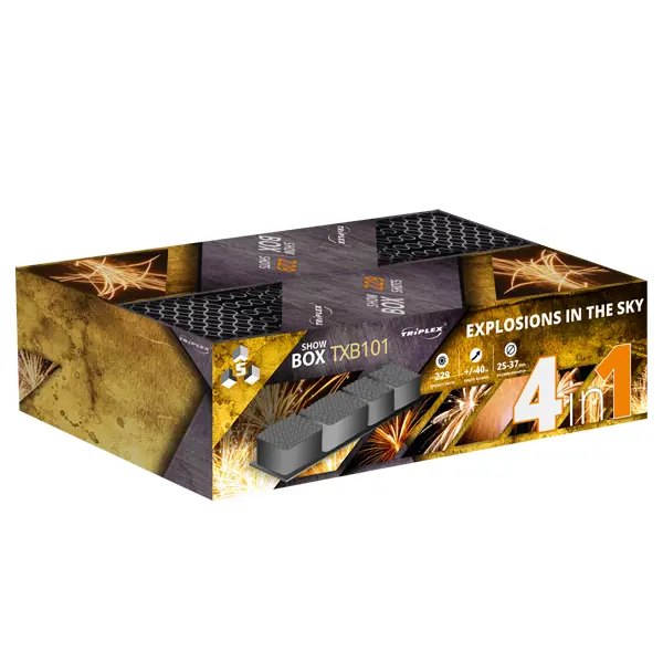 TXB100THUNDER SHOW 163S Kategoria CE: F3Klasa ADR: 1.3GZapakowanie: 1/1Kaliber [cal]: mix caliberIlość strzałów: 163Czas [s]: 100Dolot [m]: +/-40Waga prochu [g]: 3771,40 TXB101 EXPLOSIONS IN THE SKY 229S Kategoria CE: F3Klasa ADR: 1.3GZapakowanie: 1/1Kaliber [cal]: mix caliberIlość strzałów: 229Czas [s]: 142Dolot [m]: +/-40Waga prochu [g]: 3897,5 TXB715 SPECTACULAR MOMENTS 244S Czas [s]: 100Ilość strzałów: 244Kaliber [cal]: mix caliberKategoria CE: F2Klasa ADR: 1.3GWaga prochu [g]: 3232,8Zapakowanie: 1/2 TXB412 POWER HUNTER 156S Czas [s]: +/- 135Ilość strzałów: 156Kaliber [cal]: mix caliberKategoria CE: F3Opis: mix efektówWaga prochu [g]: 2901Zapakowanie: 1/1 TXB016 MAGIC LIGHT 164S Kategoria CE: F3Klasa ADR: 1.3GZapakowanie: 1/1Kaliber [cal]: 1.2″Ilość strzałów: 164Czas [s]: 105Dolot [m]: 30-35Waga prochu [g]: 3362 TXB009144SCROSSFIRE Kategoria CE: F2Klasa ADR: 1.3GZapakowanie: 1/1Kaliber [cal]: mix caliberIlość strzałów: 144Dolot [m]: 30-40Waga prochu [g]: 1348 TXB725 STARS HUNTER 253S Czas [s]: +/- 86Ilość strzałów: 253Kaliber [cal]: mix caliberKategoria CE: F3Klasa ADR: 1.3GOpis: mix effectsWaga prochu [g]: 3626Zapakowanie: 1/1Wymiary [mm]: 225/770/435 TXB726 PERFORMANCE 268S Czas [s]: +/- 95Ilość strzałów: 268Kaliber [cal]: mix caliberKategoria CE: F3Klasa ADR: 1.3GOpis: mix efektówWaga prochu [g]: 3869Wymiary [mm]: 225/740/450Zapakowanie: 1/1 TXB728 CEREMONY OF FIRE 276S Czas [s]: +/- 117Ilość strzałów: 276Kaliber [cal]: mix caliberKategoria CE: F3Klasa ADR: 1.3GOpis: mix efektówWaga prochu [g]: 3759Wymiary [mm]: 225/790/450Zapakowanie: 1/1 TXB865 ROYAL SHOW 238S Czas [s]: 150Dolot [m]: 30-35Ilość strzałów: 238Kaliber [cal]: mix caliberKategoria CE: F3Klasa ADR: 1.3GWaga prochu [g]: 3371Zapakowanie: 1/1 TXF224 SERCE 60 sek. Czas [s]: +/-60Kategoria CE: F3Klasa ADR: 1.4GOpis: czerwone serce ze srebrnymi iskramiWaga prochu [g]: 558Zapakowanie: 5/1